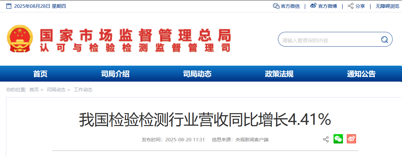 我國檢驗(yàn)檢測行業(yè)營收同比增長4.41%
